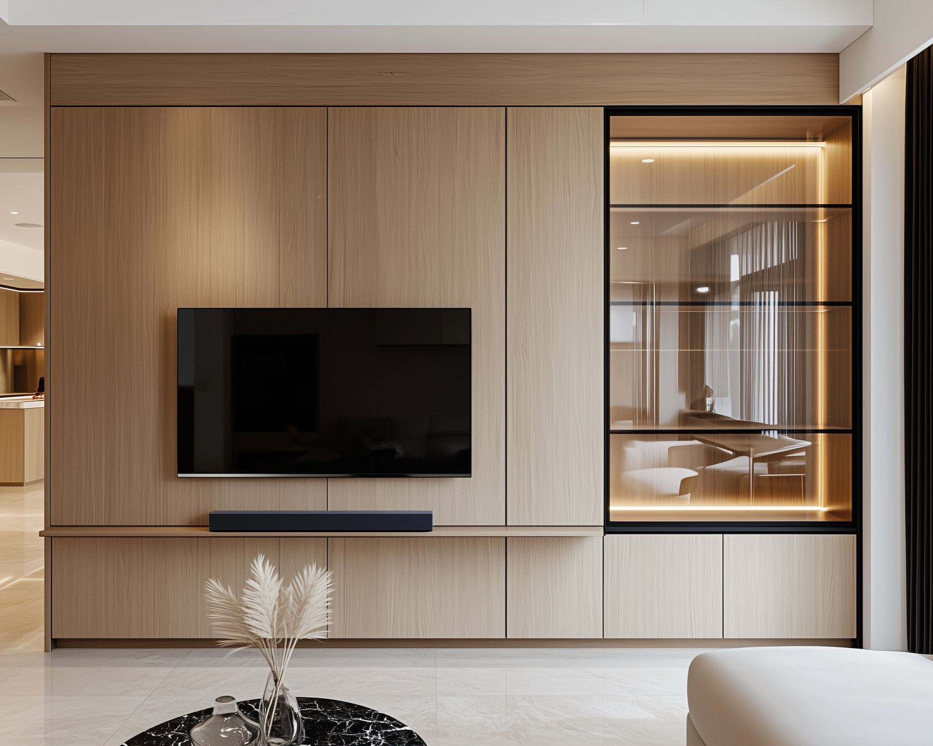 This HDB home is crafted around the timeless pairing of stone and wood finishes, creating a sense of warmth, elegance, and continuity across all spaces. The two textures complement each other — stone bringing depth and grounding, while wood adds softness and natural warmth — together forming a balanced, modern aesthetic. Subtle lighting further enhances these materials, highlighting their tactile beauty and defining each space with quiet sophistication.